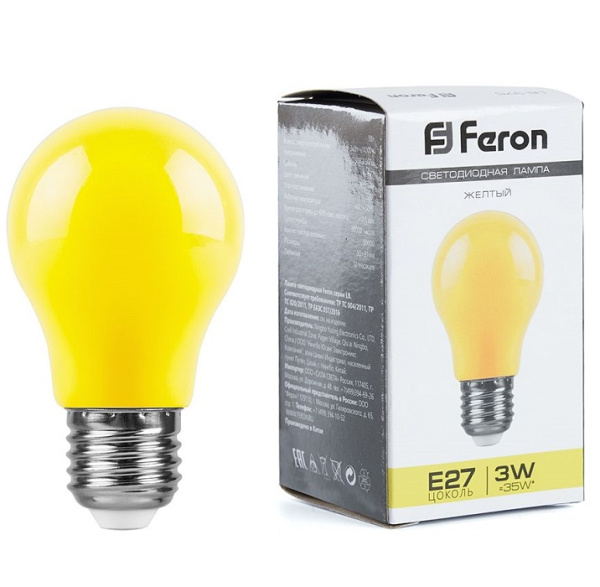 Лампа светодиодная желтая E27 3W LB-375 Feron