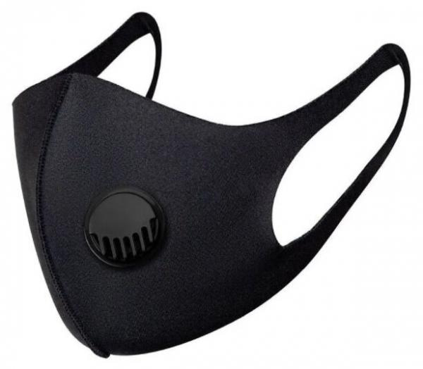 Защитная маска с клапаном Fashion, Эта многоразовая черная маска сделана из нетканого эластичного материала неопрена, за счет чего плотно и стильно сидит на лице.