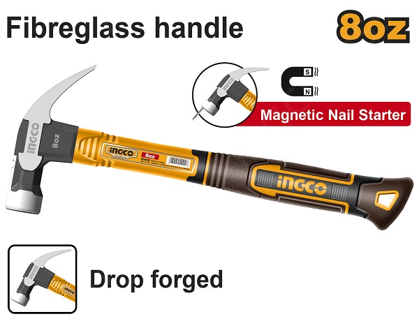 Молоток-гвоздодер - это ручной ударный инструмент с круглым бойком, а также гвоздодером - с другой. Инструмент широко используется в сфере столярных работ. Молоток имеет небольшой вес, прост и удобен в использовании. Для удобства работы боек оборудован магнитным держателем гвоздя для облегчает работу на высоте. Трехкомпонентная эргономичная рукоять из стекловолокна с противоскользящим покрытием комфортна в руках и снижает отдачу при ударе.
