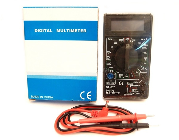 Мультиметр DT 832 предназначен для фиксирования показателей измерений постоянного и переменного напряжения (U), силы постоянного тока (A) и сопротивления (R). Также его используют для проверки транзисторов h21, диодов, «прозвонки» электроцепей (проверки на целостность). Базовая погрешность измерений примерно 1%.Единицы счета: 1999. Количество измерений в секунду