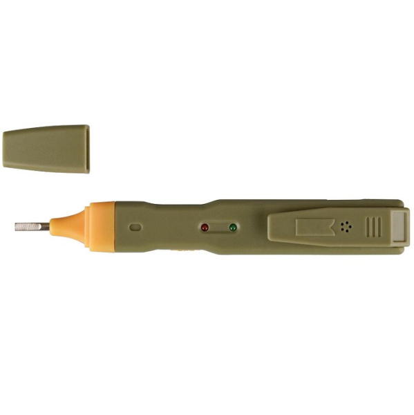 Детектор проводки FIT 56530 со звуковым оповещением. Предназначен для определение наличия напряжения переменного тока, а также “фазного” и “нулевого” провода (клеммы розетки) контактным способом, определение “фазы” или “0” изолированного провода (но не кабеля!) бесконтактным способом, определение наличия электромагнитного поля (поле скрытой проводки, электромагнитное излучение кинескопов телевизоров, СВЧ-печей и т.д.), определение полярности электрических батарей и аккумуляторов. Определение наличия напряжения переменного тока: контактным способом от 70 В до 250 В, бесконтактным способом от 70 В до 1000 В.