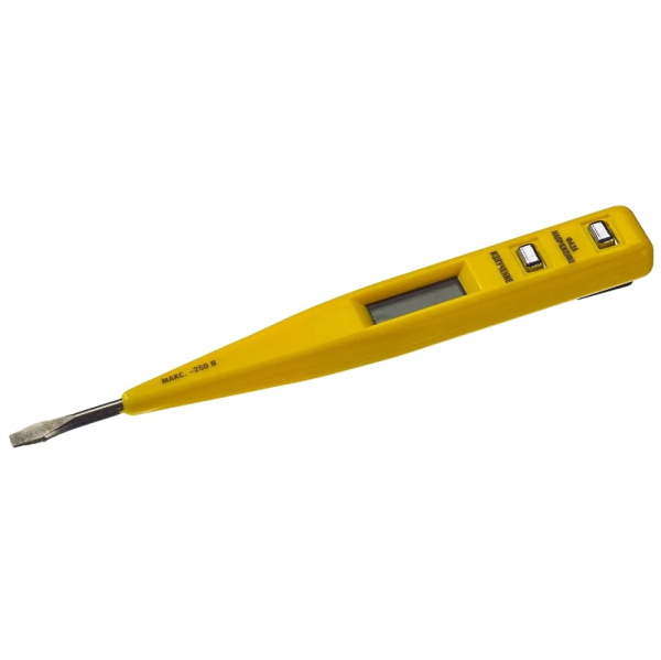 Тестер напряжения 45270 диэлектрический пластиковый корпус, имеет малый вес и компактный размер – всего 130х15 мм. Измеряет напряжение в диапазоне от 12 до 220 В (110-220 В для переменного тока/12-36 В для постоянного тока). Поиск источников электромагнитного излучения, цифровой ЖК-дисплей, удобная клипса-держатель на корпусе для крепления к карману или сумке.