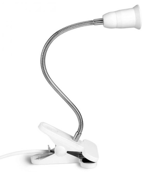 Настольная лампа на прищепке с патроном на гибкой подводке - предназначен для организации дополнительной подсветки цветов, рассады. Гибкая стойка позволяет менять высоту и направление лампы. Можно направлять свет в том направлении, которое необходимо. На одном конце удлинителя расположена специальная прищепка, с помощью которой, можно закрепить за подоконник, полку, дверь, ручку и т.д. Светильник предназначен для использования фитолампы с патроном E27. Гибкая подводка 30см позволяет наклонить патрон для освещения необходимого пространства или предметов под удобным изгибом.