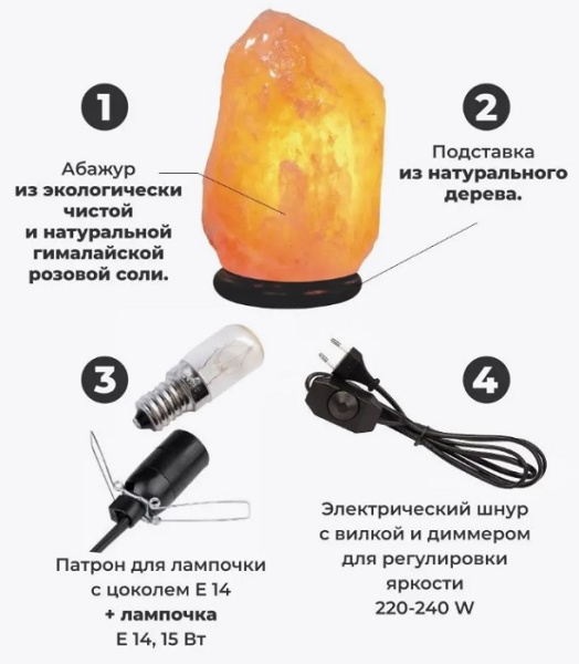 Солевая лампа из гималайской розовой соли для очистки воздуха в помещении. При включении лампа нагревается и разогревает плафон из цельного куска природной соли. Очищает воздух от вирусов, аллергенов и токсинов. Настольная лампа с абажуром из соли поможет снять и нервное напряжение, Светильник можно использовать как лампа прикроватная, ночник для детской или для спальни, а можно добавить немного уюта в гостиной или прихожей.