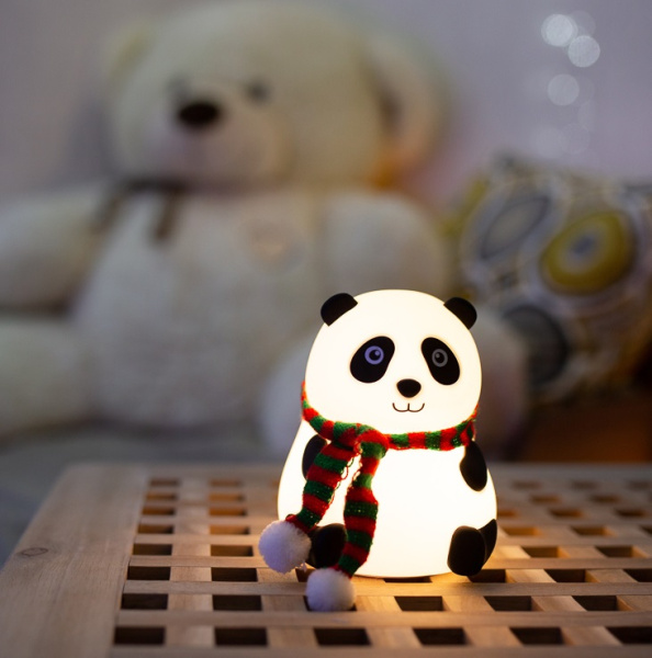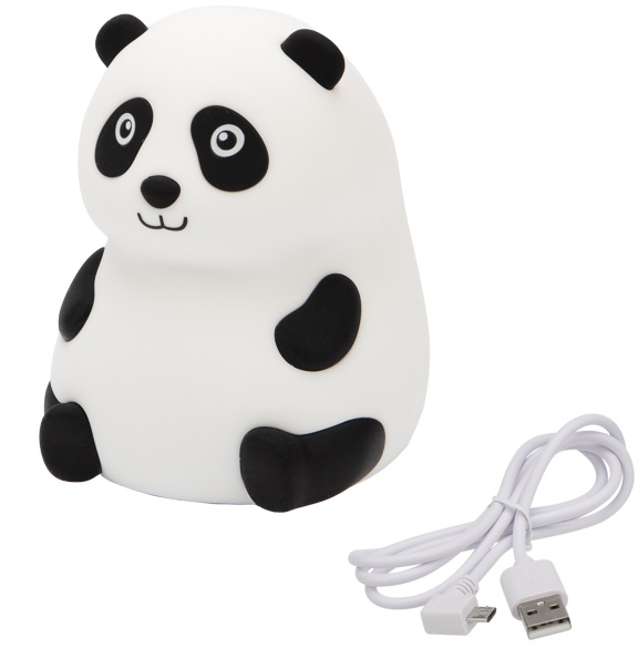 Силиконовый ночник «Панда» выполнен из мягкого материала, приятного на ощупь. Забавный персонаж придется по душе каждому ребенку, станет его лучшим другом, который поможет быстро и крепко заснуть. Ночник светится теплым белым цветом, плавно меняет оттенки RGB-диодов или светится одним цветом из 256 вариантов. Изделие не нагревается, не имеет неприятного запаха, острых углов и опасных деталей. Ночник заряжается через USB-порт, одного объема аккумулятора хватает на 12—15 часов.