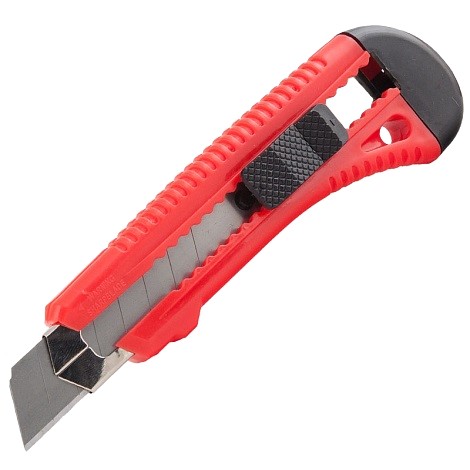 Нож Matrix 78918 с выдвижным лезвием шириной 18 мм и металлической направляющей используется для резки мягких материалов: картона, бумаги, пленки, обоев, линолеума, кожи. Лезвие выдвигается на нужную длину и фиксируется, а металлическая направляющая не дает ему перекоситься. Нож подходит как для домашнего применения, так и для профессиональных работ.