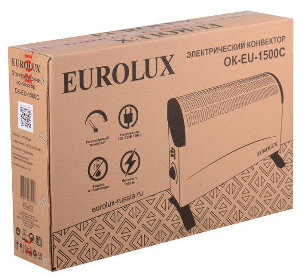 Электроконвектор OK-EU-1500C работает без вентилятора за счет конвекционного переноса тепла. Воздух свободно циркулирует внутри корпуса обогревателя: через нижние заборные решетки поступает холодный, а сверху выходит нагретый. Корпус конвектора остается комфортной температуры и не вызывает ожогов при случайном касании.