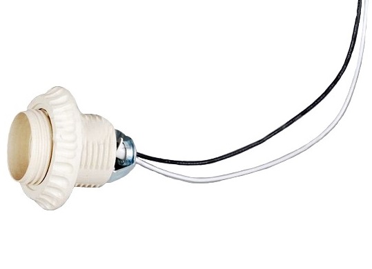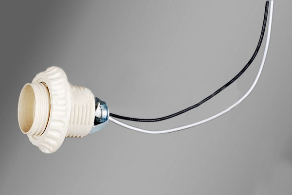 Электропатрон Е-27 резьбовой с кольцом на шнуре (белый) обладает негорючим пластиковым корпусом с внешней резьбой для прижимного кольца, прижимным кольцом для фиксации плафона, внутренней резьбовой под цоколь лампы, латунными токопроводящими контактами и двумя проводниками длинной двадцать пять сантиметров. Верхняя часть изделия оснащена дугообразной пластиной с ниппельным резьбовым отверстием диаметром десять миллиметров для крепления. Патрон для люстры с проводами служит для фиксации и подключения ламп накаливания, энергосберегающих и светодиодных ламп к электрической сети, а также применяется для замены поврежденных или вышедших из строя патронов в люстрах, абажурах и других светильниках.