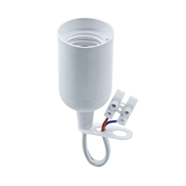 Патрон Е27 на подвесе с клеммой отлично подойдет для быстрой организации освещения, например, рабочей площадки или подсобных помещений. Защиты у патрона нет (IP20), допускается монтаж в закрытых сухих, относительно чистых помещениях. Применяется для установки любых ламп с цоколем E27 (средний цоколь ES), рассчитанных на питание 220 (230) В 50 (60) Гц. В качестве подвесного крепления используется провод питания, закрепленный в специальной клипсе.