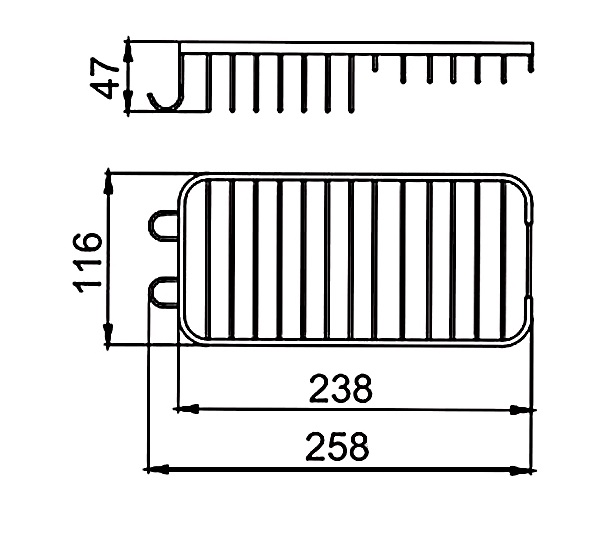 Полка металлическая F338 выполнена в виде соединённых вместе большого и маленького лотка, образованных металлическими прутьями, расположенными на небольшом расстоянии. Полка отличается удобством, красотой и надёжностью.