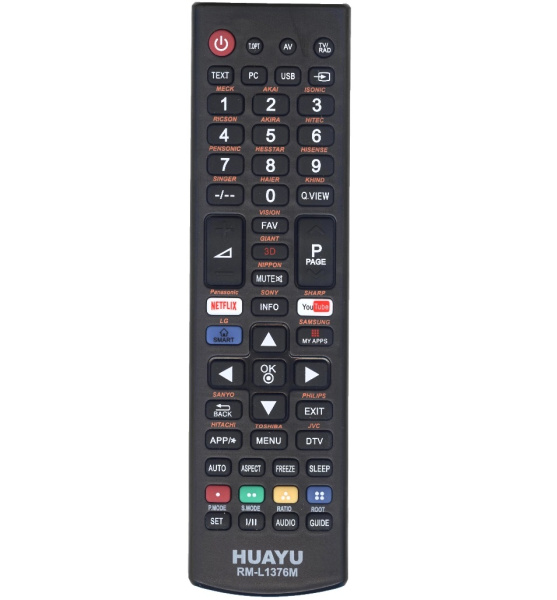 Пульт универсальный SMART TV RM-L1376M HUAYU. Пульт подходит для абсолютного большинства телевизоров старых и новых моделей. Поддерживает самые популярные европейские, корейские, японские бренды, так и редкие китайские и отечественные марки.