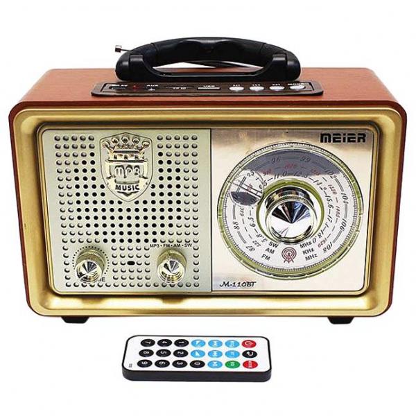 Радиоприемник Meier M-110BT выполненный в ретро-дизайне идеально подходит для туристов, рыбаков, путешественников, любителей отдыха на природе.