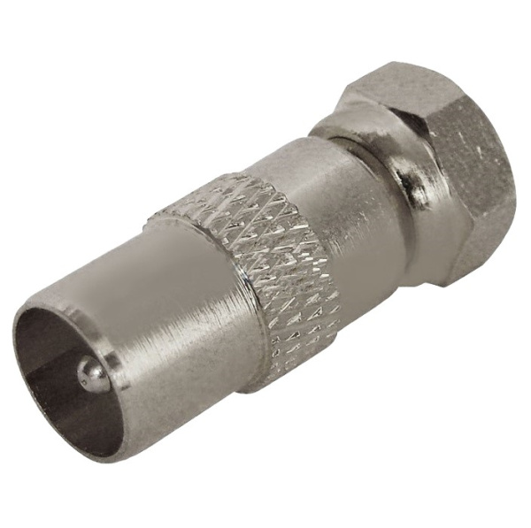 ПЕРЕХОД штекер F - штекер TV (03-074) предназначен для соединения двух радиочастотных компонентов или кабеля с оборудованием, с разъемами гнездо F и гнездо ТВ. Применяется главным образом при подключении эфирного, кабельного и спутникового телевидения. Изготовлен переход из никелированного сплава первичной меди (биметалл), что гарантирует минимальный уровень потерь при прохождении сигнала.
