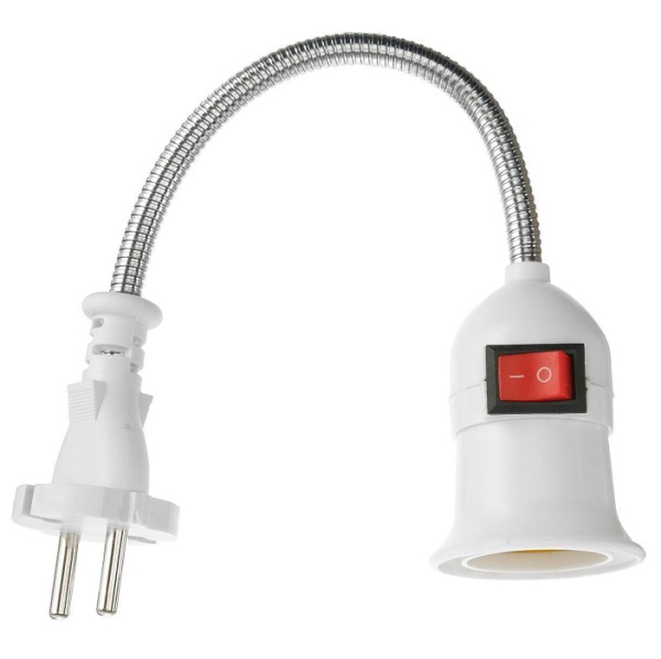 Удлинитель с патроном для лампы с цоколем Е27 с выключателем подойдет для организации местного основного и дополнительного освещения или направленной подсветки рабочей зоны. Для подачи питания данному прибору переходнику необходима только розетка.