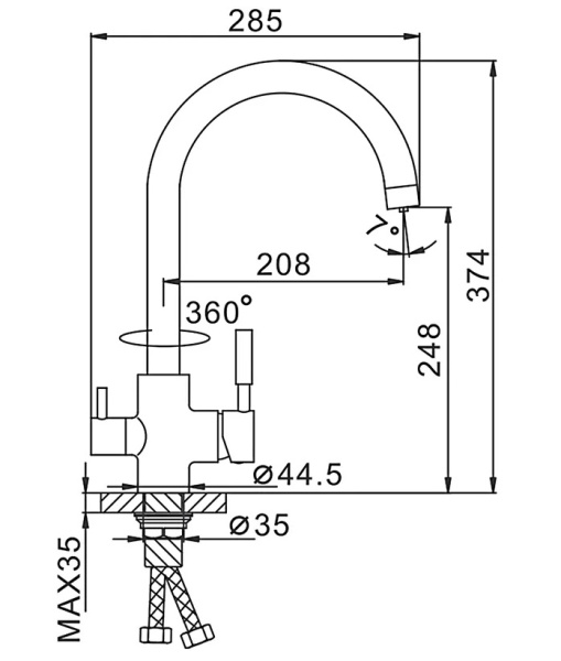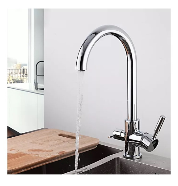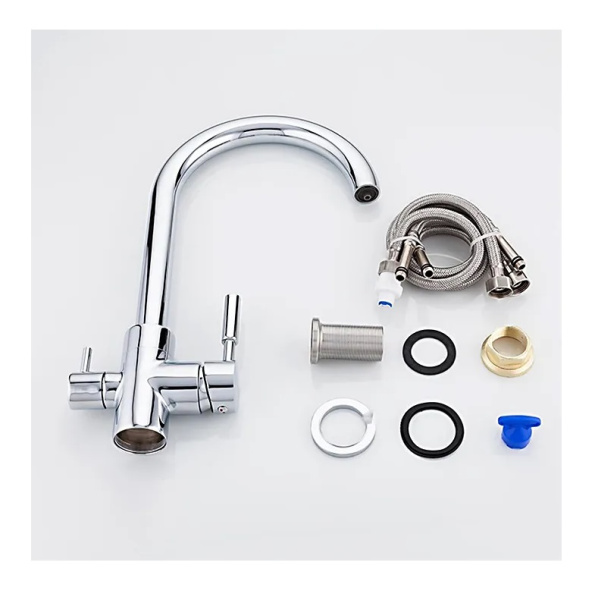 Смеситель для кухни F4352 - это устройство, предназначенное для подключения к о основному фильтру. Смеситель обладает в конструкции дополнительным рычагом управления, который позволяет включать отфильтрованную воду отдельно от той, что поступает по водопроводу. Корпус смесителя F4352 состоит из латунного сплава, большую долю которого составляет медь.