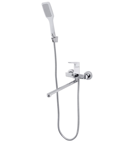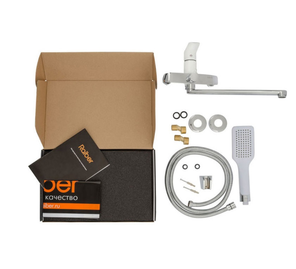 Смеситель для ванны R3504, материал латунь прочный и экологичный. Смеситель имеет непревзойденное качество и внешнюю выразительность. Душевая лейка имеет 1 режим со стабильным напором. Аэратор экономит расход воды и защищает систему от образования известняковых отложений и уменьшает шум воды.