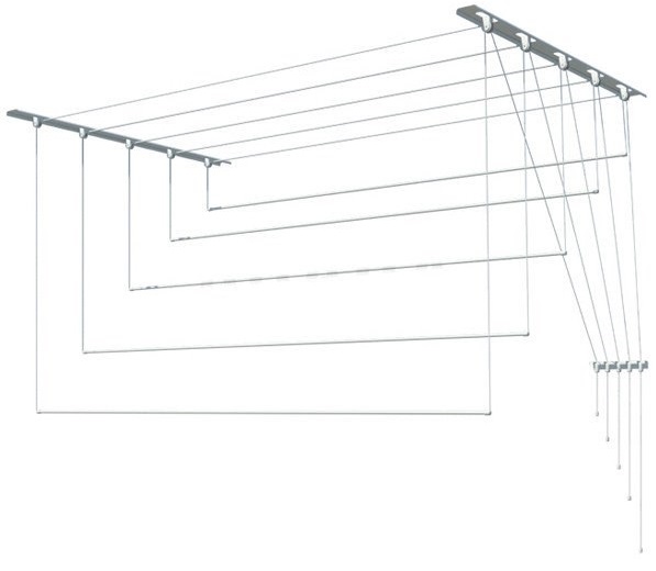 Сушилка изготовлена из прочных, экологически чистых материалов, может использоваться в ванной комнате, на лоджии или балконе. Сушилка для белья очень проста в эксплуатации. Белье сушится под самым потолком и не создает неудобств. Стержни, на которые развешивается белье, опускаются до нужного уровня в зависимости от роста человека. Благодаря достаточному интервалу между прутьями, обеспечивающему постоянный приток воздуха, белье сушится быстрее. Металлические стержни защищены от коррозии и царапин оболочкой ПВХ.