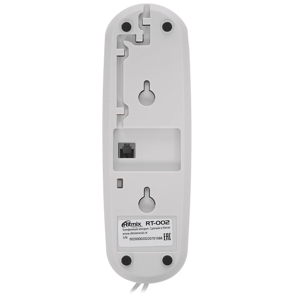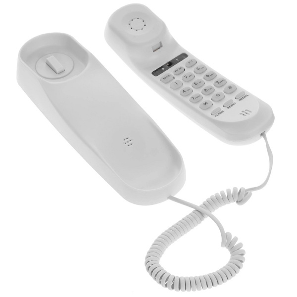 Телефон проводной RT-002 подходит для использования дома или в небольшом офисе. Компактная модель белого цвета удобна в эксплуатации и занимает минимум места. Трубку можно закрепить на стене или установить на стол. Устройство работает от стандартной телефонной линии и позволяет осуществлять звонки на другие номера.