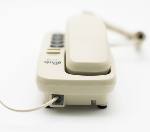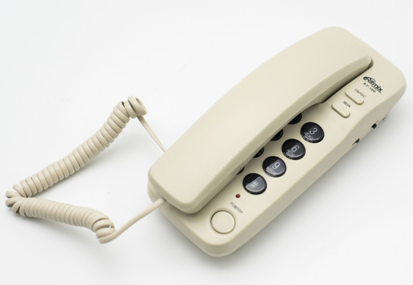 Телефон проводной RT-100 слоновая кость, узкий проводной телефон в настольно-настенном исполнении. Поддерживает как традиционный импульсный, так и современный тональный набор номера.