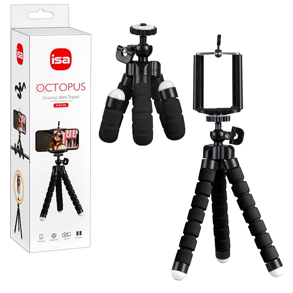 Настольный мини-штатив подойдет для Вашей экшн-камеры, а также цифровых и компактных фотокамер, небольших легких селфи-колец. Данный мини-штатив является абсолютно универсальным и удобным устройством, которое вы можете легко взять с собой куда угодно. Штатив очень компактен, вы можете положить его в любую сумку, поворачивающиеся на 360 градусов основание позволит делать любые снимки. Так же можно использовать для телефона используя специальное крепление, которое идет в комплекте.