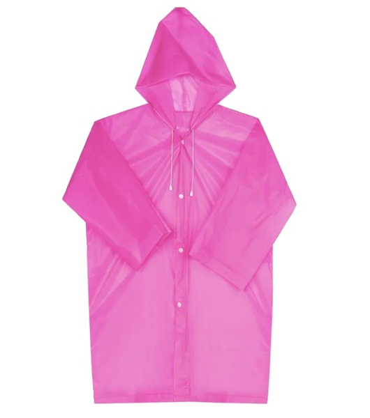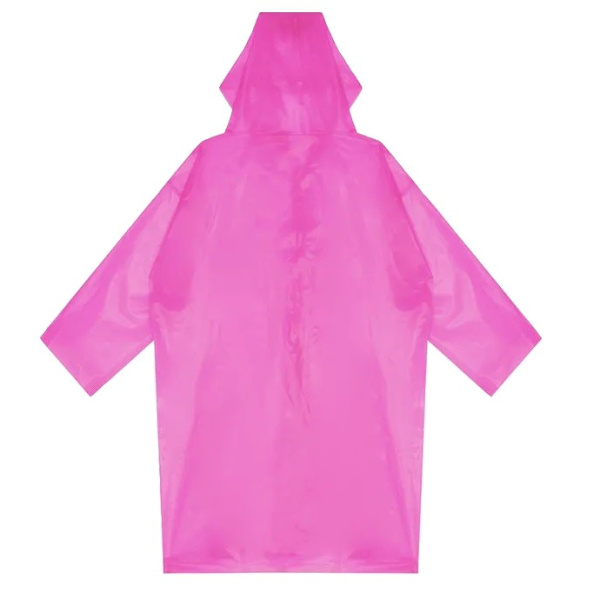 Детский дождевик-плащ с капюшоном и длинным рукавом изготовлен из полупрозрачного цветного полиэтилена. Идеально подойдет для детей 6-8 лет. Материал гладкий и плотный. Плащ имеет свободный крой и не сковывает движений, поэтому его точно можно надеть даже поверх детской куртки.