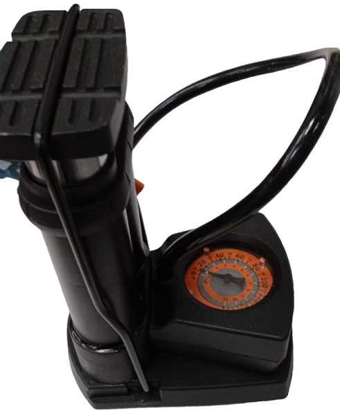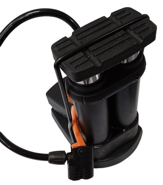 Насос двухцилиндровый с манометром (ножной), для надувания как велосипедных, так и автомобильных клапанов.