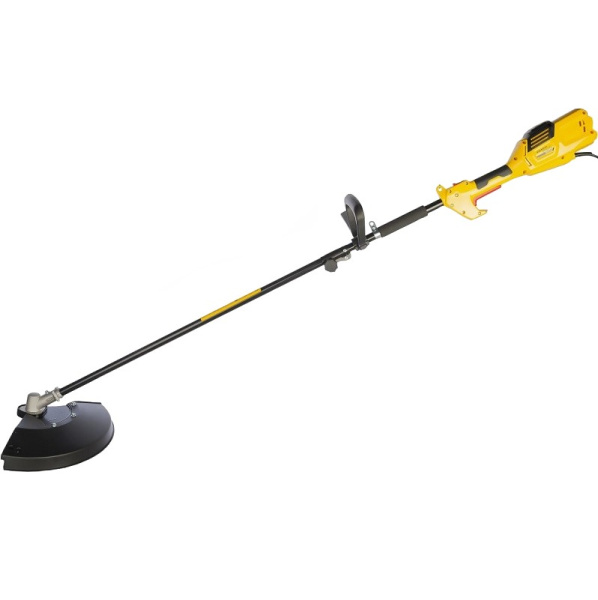 Триммер электрический ET 1004A - триммер большой мощности для средних и больших площадей площадей с грубой травой, сорняками и кустарником. Рекомендуемая площадь обработки до 14-ти соток. Ручка регулируется под рост оператора. Шпуля с леской полуавтоматическая, что позволяет подавать леску нажатием об землю во время работы. Так же коса комплектуется металлическим четырехлучевым диском для скашивания сухостоя, сорняка и молодой поросли. Широкий защитный кожух хорошо защитит оператора от летящей травы.