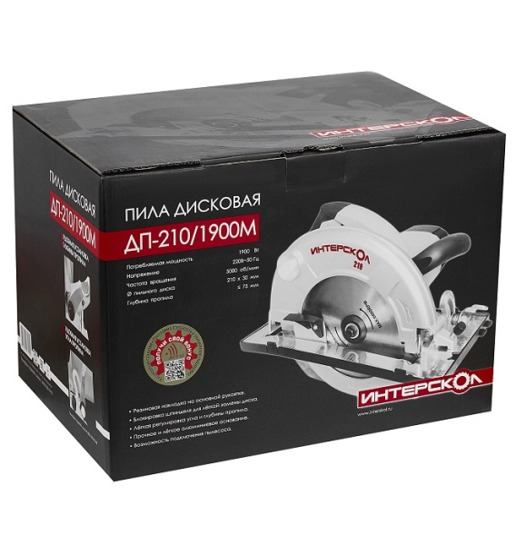 Дисковая пила ДП-210/1900 М - мощная конструкция для профессионального использования. Справляется с распиловкой на глубину до 75мм разнообразных материалов (фанера, ламинат, доски). Пилу оснастили мотором мощностью 1900Вт, что позволяет использовать диск диаметром 210мм. Имеет плавный пуск, защиту от перегрузки. Всё это упрощает эксплуатацию пилы и увеличивает ее срок службы. Специальный патрубок позволяет подключить пылесос для отвода опилок. Для надежной фиксации дисковой пилы в руках предусмотрены две удобные рукоятки. Угол наклона дисковой пилы может регулироваться от 0 до 45 градусов.