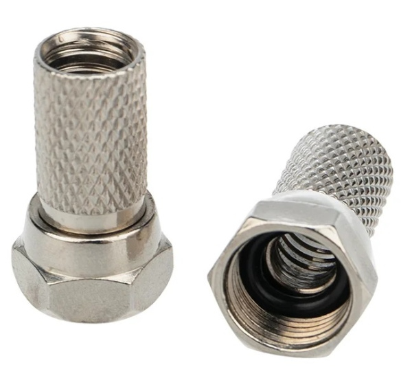 Антенный разъем штекер F для кабеляпредназначен для соединения коаксиального кабеля. Разъем не имеет непосредственного штекера, поэтому роль штекера выполняет центральная жила кабеля, что позволяет избежать дополнительных потерь сигнала.