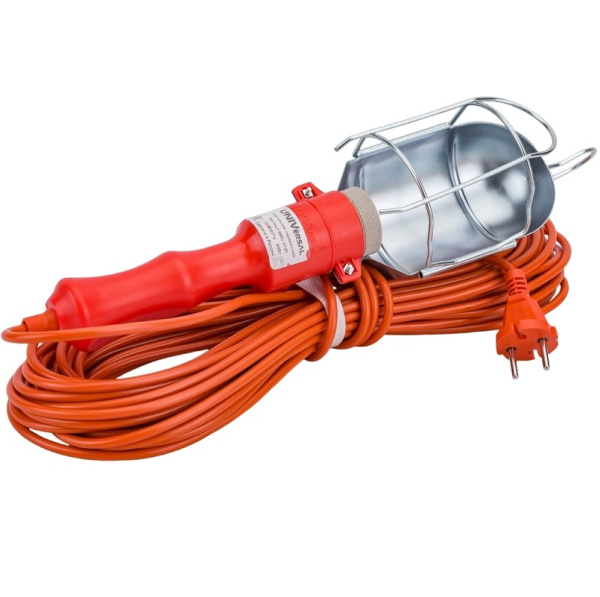 Переносной светильник с выключателем 10м 966U-0110 служит для освещения пространства на удалении от стационарной розетки. Корпус оранжевого цвета изготовлен из пластика, обеспечивая тем самым дополнительную безопасность от поражения электрическим током. Металлический отражатель имеет антикоррозийное покрытие и снабжен защитной сеткой. Выключатель расположен на корпусе, что облегчает использование. Длина провода - 10 метров. Крюк для подвеса позволяет освободить руки для работы. Цоколь Е27 подходит для любого типа ламп (мощность лампы накаливания не выше 60Вт). Изделие пригодится для работы в гараже или мастерской.