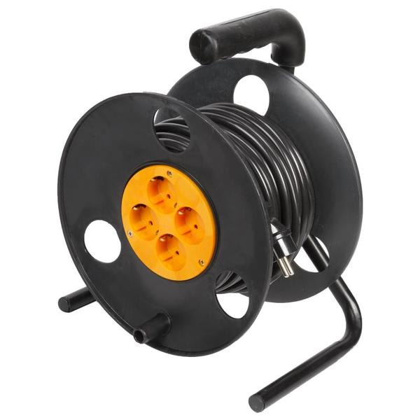 Удлинитель на катушке электрический предназначен для подключения электрооборудования к сети на удаленном расстоянии. Перед использованием размотать. Удлинитель– устройство, состоящее из провода сечением 1,5 мм и круглого барабана, на который наматывается токоведущая часть. Используется при необходимости подключить к сети электрические приборы, расположенные на расстоянии до 30 м от розетки. Катушка располагается на подставке, имеет ручку для удобства переноса. Преимущества: прочный пластик катушки; надежная изоляция провода; наличие ручки для переноса.
