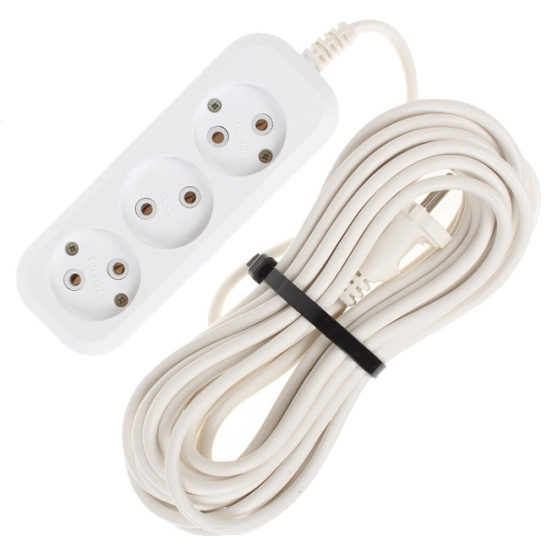 Удлинитель электрический 5 метров 3 гнезда без заземления JETT представляет собой электротехническое устройство с выносными розетками. Рассчитан на подключение 3 независимых нагрузок общей мощностью 2200 Вт (номинальное значение тока не более 10 А, напряжения 220 В). Предназначен для использования в жилых, бытовых, служебных помещениях в качестве сетевого электроудлинителя. Корпус белого цвета из пластика АБС, контакты из цветного металла.