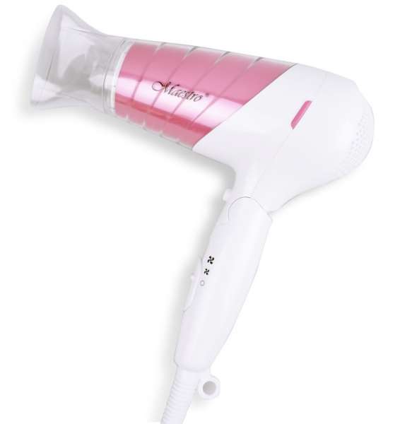 Фен Maestro - это легкий и удобный помощник для работы с волосами. Благодаря удобной форме он легко ляжет в вашу руку и вы без особых усилий сможете им пользоваться, а как только закончите, то можете его повесить там, где вам удобно, ведь у фена есть петля для подвешивания.