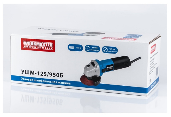 Шлифмашина угловая УШМ-125/950Б инструмент для резки, зачистки и шлифовки металла, бетона, камня и кирпича в строительстве и при ремонте. Функции делают использование инструмента более комфортным и безопасным: Антивибрационный механизм. Электронная регулировка оборотов. Защита от перегрузки. Функция "Плавный спуск" – отсутствует. Число оборотов УШМ-125/950Б которое может развить за минуту, составляет 11000. В качестве рабочей насадки используется диск имеющий величину 125 мм.Удобна в обращении благодаря эргономичной форме корпуса. Дополнительные вентиляционные отверстия для самых нагретых зон для высокой устойчивости к нагрузкам увеличивают срок службы.