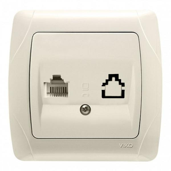 Розетка телефонная RJ-11скрытой установки Carmen VIKO применяется для подключения к телефонной линии. Основание устройства выполнена из прочного пластика, лицевая панель - из качественного АБС-пластика кремового цвета, который обладает ударопрочностью, термостойкостью, устойчивостью к воздействию солнечных лучей. Модель имеет четырёхконтактный телефонный разъём RJ-11. Телефонная розетка Viko Carmen для встроенного монтажа в сборе, служит для быстрого подключения к телефонным сетям общего пользования. Присоединение телефонного кабеля к розетке не требует специального инструмента – используется поворотный коннектор. Если необходимо объединить в одну линию несколько выключателей или розеток, одинарная рамка легко снимается и устанавливается многопостовая.