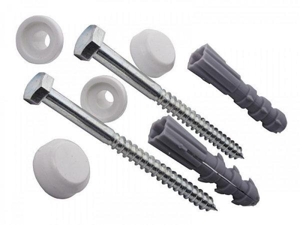 Набор для крепления унитаза к полу используется при монтаже сантехники с высотой основания 10мм в туалете, санузле или ванной комнате. В комплекте по два экземпляра дюбелей из прочного пластика, стальных болтов длиной 70мм и пластиковых втулок. Заглушки из белого пластика маскируют крепежный узел и препятствуют попаданию пыли и грязи. При монтаже унитаза потребуется просверлить в полу два отверстия для креплений. Используется для крепления унитаза к бетону, кирпичной кладке, полым строительным материалам, листам, плитам. Основные преимущества: -Прочно фиксирует унитаз и не допускает смещения; -Легко устанавливается и позволяет при необходимости демонтировать сантехнику; -Не требует использования дополнительных крепежных элементов.