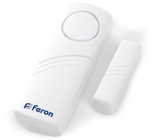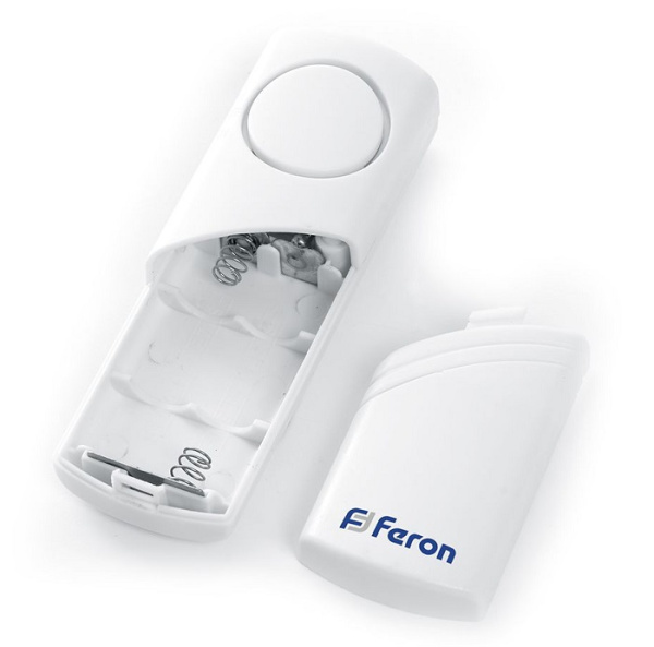 Звонок беспроводной/сигнализация FERON 007-D 1 мелодия. Цвет белый. Регулировка громкости – нет. База: 2*1,5V/AAA. Габариты: 92*31*16мм. КНОПКА: IP20. Рабочая t -20..+50°С. Размер кнопки: 49*13*12мм. Легко и быстро установливается на оконную раму или входную дверь внутри помещения, сигнализация сработает при удалении датчика от корпуса более, чем на 15мм. Установка: -Удалите защитный слой с оборотной стороны датчика и магнитного контакта и установите их на дверной и/или оконной раме, совместив декоративные отметки на деталях. -Для включения сигнализации переведите переключатель в позицию «ON». Сигнализация сработает при отдалении деталей друг от друга более чем на 15 мм. -Для выключения сигнализации переведите переключатель в положение «OFF». -При установке прибора расстояние между датчиком и магнитным контактом не должно быть больше 15мм. -Используется совместно с батарейками типа ААА.